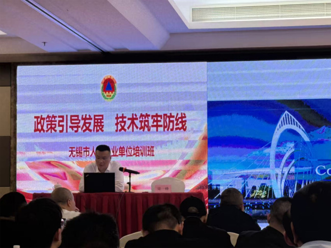 秋意正浓,学履不停。为进一步提升无锡市人防从业单位的专业技术能力和质量责任意识,确保人防工程的建设、维护和管理质量,切实巩固城市防护基础。10月24日,由无锡市民防行业协会主办的 “无锡市人防从业单位培训班” 在无锡古罗马大酒店隆重举行。本次培训以 “政策引导发展,技术筑牢防线” 为主题,汇聚了来自全市(含江阴、宜兴)70多家人防从业单位的企业负责人、技术负责人、安装负责人共计210多名人员参加了此次培训。