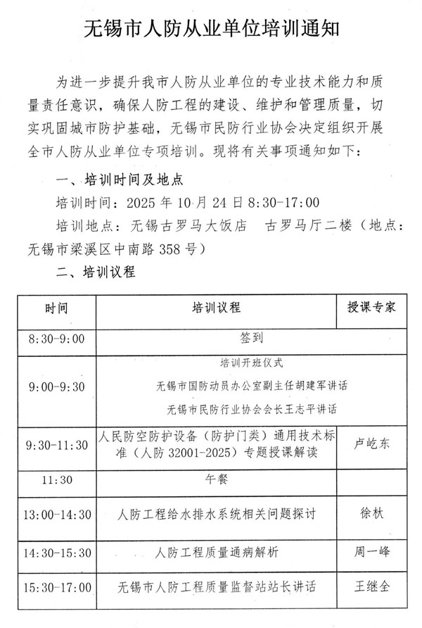 2025年无锡市人防从业单位培训通知